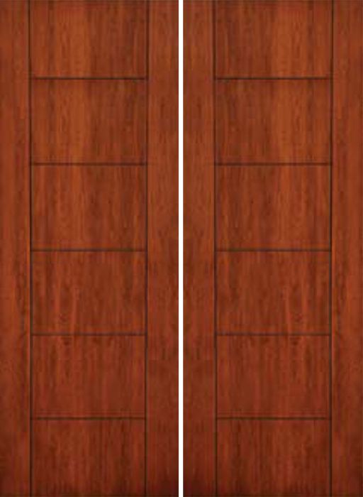 WDMA 72x96 Door (6ft by 8ft) Exterior Cherry 96in Contemporary Lines Two Vertical Grooves Double Entry Door