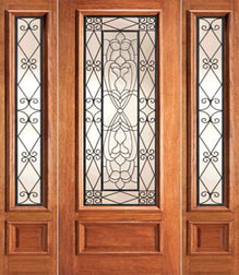 WDMA 78x80 Door (6ft6in by 6ft8in) Exterior Knotty Alder Prehung Door with Two Sidelights 2 Panel