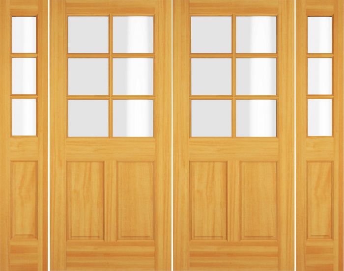 WDMA 84x80 Door (7ft by 6ft8in) Exterior Swing Hickory Wood 1/2 Lite 6 Lite Double Door / 2 Sidelight