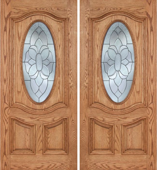 WDMA 84x80 Door (7ft by 6ft8in) Exterior Oak Dally Double Door w/ BO Glass - 6ft8in Tall