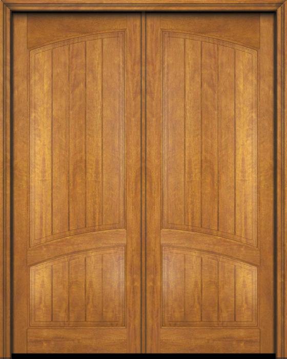 WDMA 84x80 Door (7ft by 6ft8in) Interior Swing Mahogany 2 Panel Arch Top V-Grooved Plank Rustic-Old World Exterior or Double Door