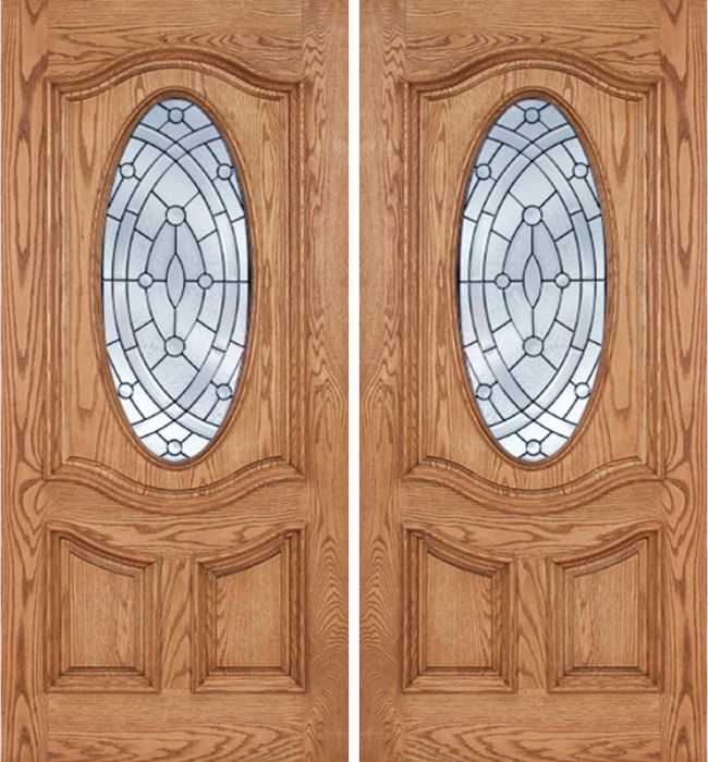 WDMA 84x80 Door (7ft by 6ft8in) Exterior Oak Dally Double Door w/ EE Glass - 6ft8in Tall