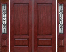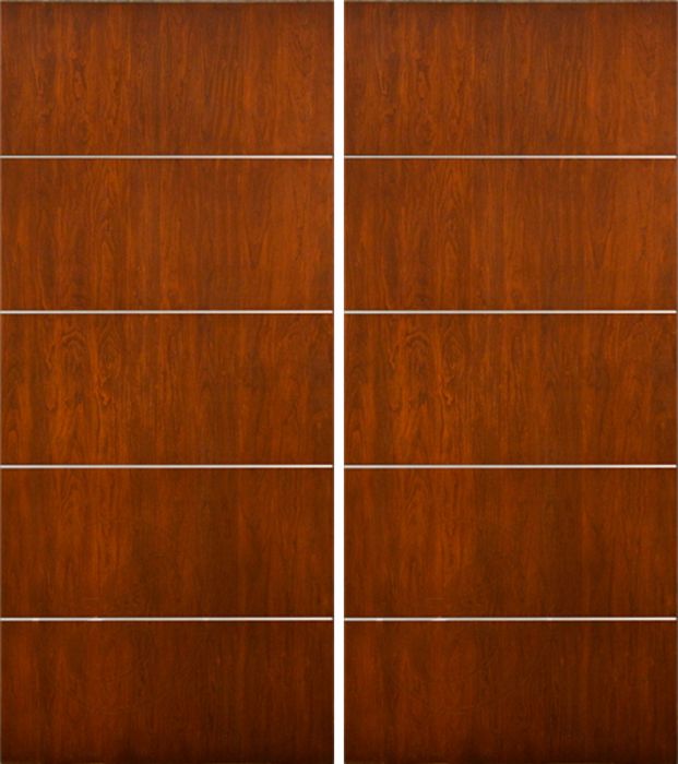 WDMA 84x80 Door (7ft by 6ft8in) Exterior Cherry Contemporary Lines Horizontal Aluminum Bar Double Entry Door