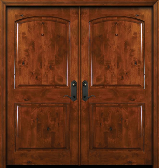 WDMA 84x80 Door (7ft by 6ft8in) Exterior Knotty Alder 42in x 80in Double Arch 2 Panel Estancia Alder Door