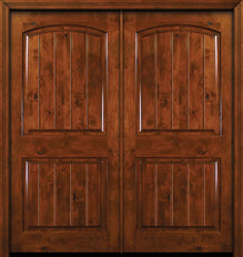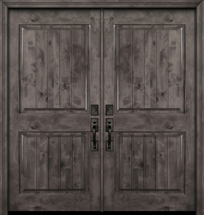 WDMA 84x80 Door (7ft by 6ft8in) Exterior Knotty Alder 42in x 80in Double 2 Panel Square V-Grooved Estancia Alder Door