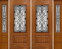 WDMA 84x80 Door (7ft by 6ft8in) Exterior Cherry Plank Panel 3/4 Lite Double Entry Door Sidelights Full Lite w/ MD Glass
