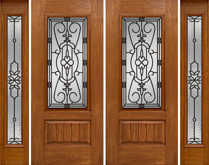 WDMA 84x80 Door (7ft by 6ft8in) Exterior Cherry Plank Panel 3/4 Lite Double Entry Door Sidelights Full Lite w/ MD Glass Attributes Table