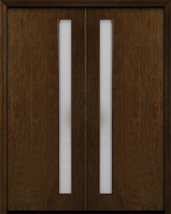 WDMA 84x96 Door (7ft by 8ft) Exterior Cherry 96in Contemporary One Vertical Lite Double Fiberglass Entry Door