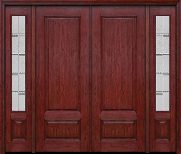 WDMA 84x96 Door (7ft by 8ft) Exterior Cherry 96in Two Panel Double Entry Door Sidelights Crosswalk Glass