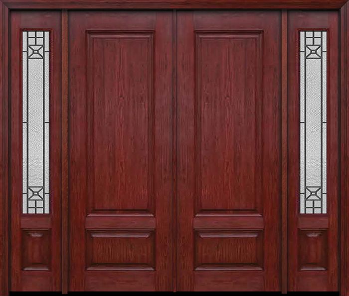 WDMA 84x96 Door (7ft by 8ft) Exterior Cherry 96in Two Panel Double Entry Door Sidelights Courtyard Glass