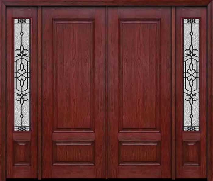 WDMA 84x96 Door (7ft by 8ft) Exterior Cherry 96in Two Panel Double Entry Door Sidelights Jacinto Glass