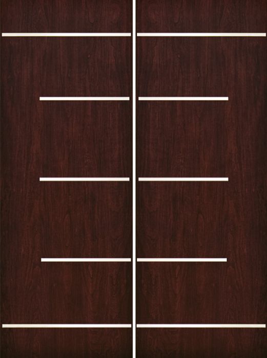 WDMA 84x96 Door (7ft by 8ft) Exterior Cherry 96in Contemporary Stainless Steel Bars Double Fiberglass Entry Door FC873SS