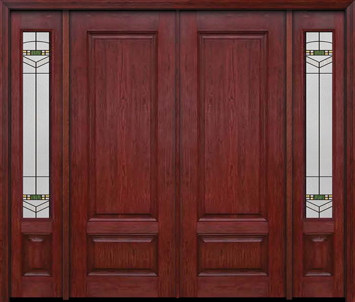 WDMA 84x96 Door (7ft by 8ft) Exterior Cherry 96in Two Panel Double Entry Door Sidelights Greenfield Glass