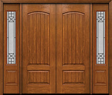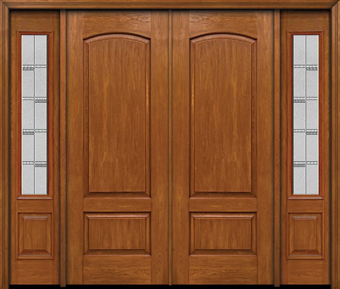 WDMA 84x96 Door (7ft by 8ft) Exterior Cherry 96in Two Panel Camber Double Entry Door Sidelights Crosswalk Glass