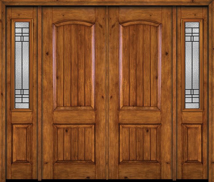 WDMA 84x96 Door (7ft by 8ft) Exterior Knotty Alder 96in Alder Rustic V-Grooved Panel Double Entry Door Sidelights Pembrook Glass Attributes Table