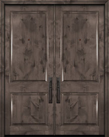 WDMA 84x96 Door (7ft by 8ft) Exterior Knotty Alder 96in Alder Rustic V-Grooved Panel Double Entry Door Sidelights Pembrook Glass