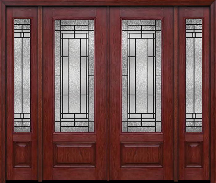 WDMA 84x96 Door (7ft by 8ft) Exterior Cherry 96in 3/4 Lite Double Entry Door Sidelights Pembrook Glass