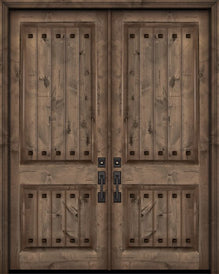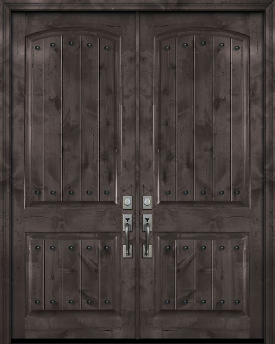 WDMA 84x96 Door (7ft by 8ft) Exterior Knotty Alder 42in x 96in Double Arch 2 Panel V-Grooved Estancia Alder Door with Clavos