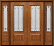 WDMA 84x96 Door (7ft by 8ft) Exterior Knotty Alder 96in Alder Rustic Plain Panel 2/3 Lite Double Entry Door Sidelights Pembrook Glass