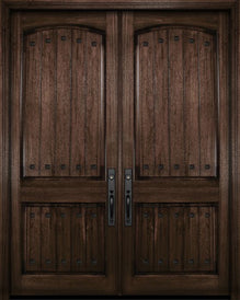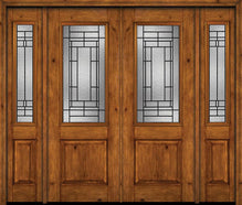 WDMA 84x96 Door (7ft by 8ft) Exterior Knotty Alder 96in Alder Rustic V-Grooved Panel 2/3 Lite Double Entry Door Sidelights Pembrook Glass