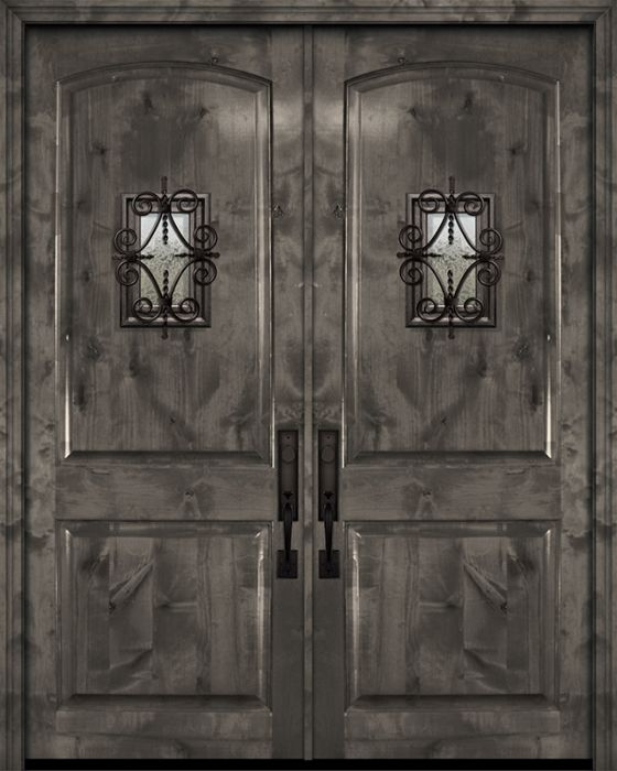 WDMA 84x96 Door (7ft by 8ft) Exterior Knotty Alder 42in x 96in Double Arch 2 Panel Estancia Alder Door with Speakeasy Attributes Table