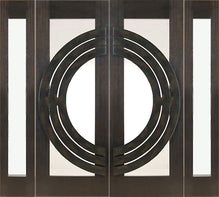 WDMA 96x96 Door (8ft by 8ft) Exterior Mahogany 2-1/4in Thick Double Doors Sidelights Low-E Glass Iron Work