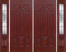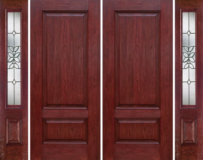 WDMA 96x80 Door (8ft by 6ft8in) Exterior Cherry Two Panel Double Entry Door Sidelights CD Glass