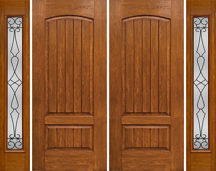 WDMA 96x80 Door (8ft by 6ft8in) Exterior Cherry Plank Two Panel Double Entry Door Sidelights Full Lite WY Glass
