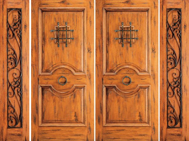 WDMA 96x80 Door (8ft by 6ft8in) Exterior Knotty Alder Alder Double Door with Two Sidelights Speakeasy