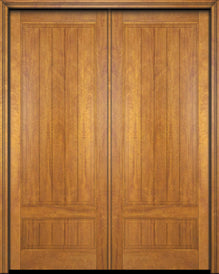 WDMA 56x84 Door (4ft8in by 7ft) Exterior Barn Mahogany Rustic Arch Panel V-Grooved Plank or Interior Double Door