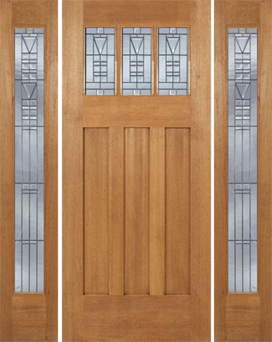 WDMA 60x84 Door (5ft by 7ft) Exterior Mahogany Barnsdale Single Door/2 Full-lite side w/ B Glass