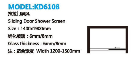 Cheap Shower Straight Sliding Glass Door(KD6108) Product Description Name KD6108 Size Model Size: 1300*1900mm (Height:1800~2200mm width: 1200-1500mm) Shape Sliding door cheap with aluminum frame Tempered glass 6mm/8mm Tempered glass certification DIN EN 12150,AS/NZS 2208:1996,ANSI Z97.1-2004 , BS6206 Glass type for choice Clear, Frosted, Strip frosted, Silk-screen glass Glass color for...