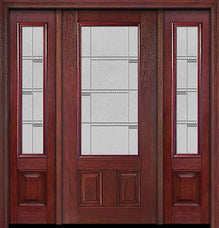 WDMA 54x80 Door (4ft6in by 6ft8in) Exterior Cherry Camber 3/4 Lite Single Entry Door Sidelights Topaz Glass
