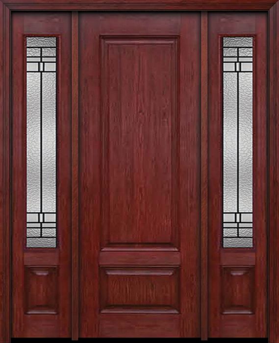 WDMA 54x96 Door (4ft6in by 8ft) Exterior Cherry 96in Two Panel Single Entry Door Sidelights Pembrook Glass