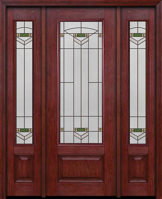 WDMA 54x96 Door (4ft6in by 8ft) Exterior Cherry 96in 3/4 Lite Single Entry Door Sidelights Greenfield Glass