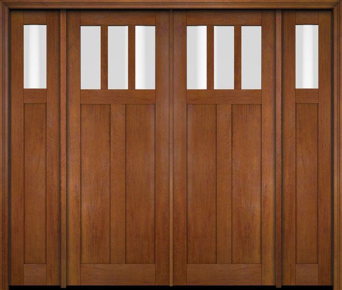 WDMA 86x80 Door (7ft2in by 6ft8in) Exterior Swing Mahogany 3 Horizontal Lite Craftsman Double Entry Door Sidelights
