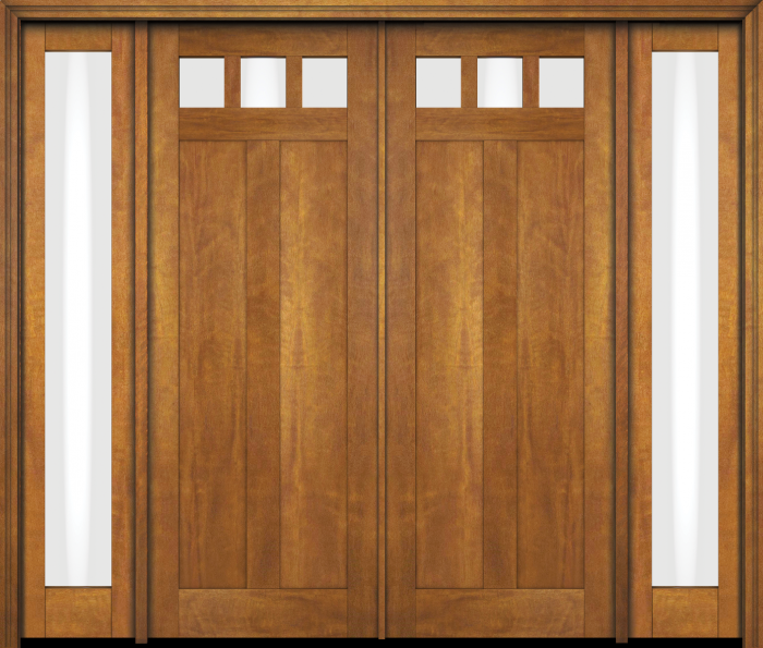 WDMA 86x80 Door (7ft2in by 6ft8in) Interior Swing Mahogany Top View Lite Craftsman 2 Panel Two Sidelight Exterior or Double Door