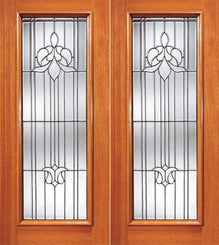 WDMA 84x80 Door (7ft by 6ft8in) Exterior Mahogany Full Lite Contemporary Design Glass Double Door
