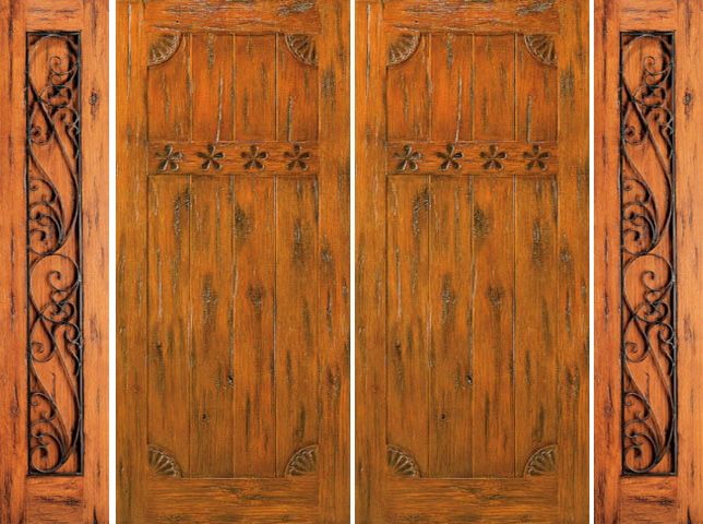 WDMA 100x80 Door (8ft4in by 6ft8in) Exterior Knotty Alder Front Prehung Double Door with Two Sidelights Carved