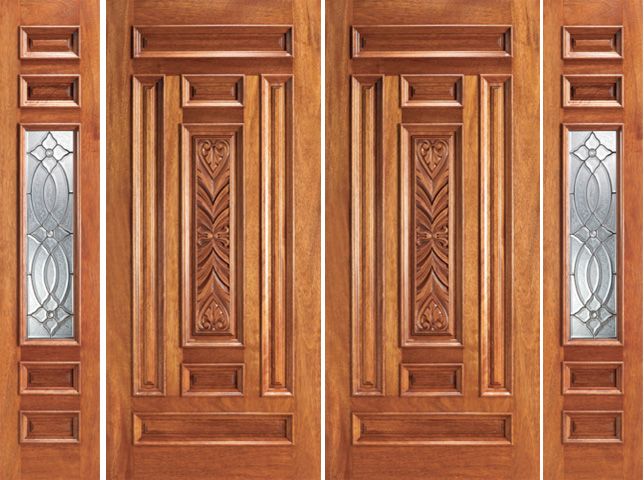 WDMA 108x84 Door (9ft by 7ft) Exterior Mahogany Prehung 1 Lite Front Double Door Two Sidelights