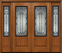 WDMA 120x96 Door (10ft by 8ft) Interior Swing Mahogany Rustic 2 Panel Exterior or Double Door with Speakeasy / Straps