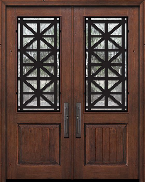 WDMA 64x96 Door (5ft4in by 8ft) Exterior Knotty Alder IMPACT | 96in Double 1 Panel 2/3 Lite Contempo Steel Grille Door