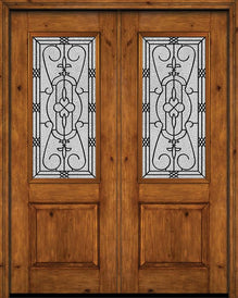 WDMA 72x96 Door (6ft by 8ft) Exterior Knotty Alder 96in Alder Rustic V-Grooved Panel 2/3 Lite Double Entry Door Wyngate Glass