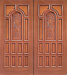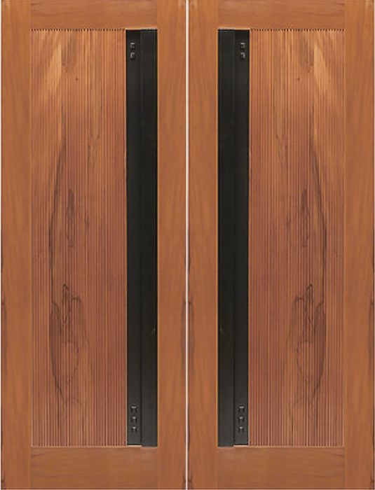 WDMA 84x96 Door (7ft by 8ft) Exterior Tropical Hardwood Flush Panel Double Door with a Contemporary Heavy Iron Handle Attributes Table
