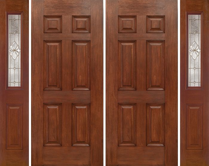 WDMA 88x80 Door (7ft4in by 6ft8in) Exterior Mahogany Six Panel Double Entry Door Sidelights 1/2 Lite w/ HM Glass