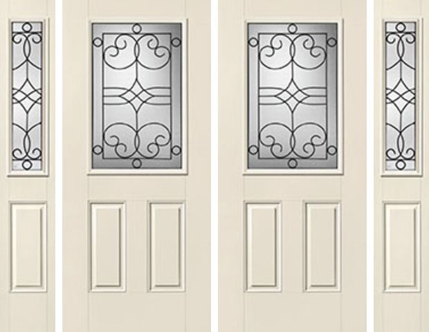 WDMA 88x80 Door (7ft4in by 6ft8in) Exterior Smooth Salinas Half Lite 2 Panel Star Double Door 2 Sides Half Lite Sidelight