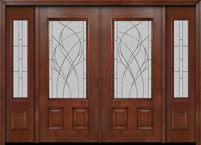 WDMA 88x80 Door (7ft4in by 6ft8in) Exterior Mahogany 3/4 Lite Two Panel Double Entry Door Sidelights Waterside Glass Attributes Table