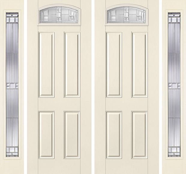 WDMA 88x96 Door (7ft4in by 8ft) Exterior Smooth SaratogaTM 8ft Camber Top Lite 4 Panel Star Double Door 2 Sides