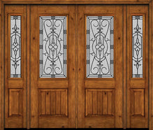 WDMA 88x96 Door (7ft4in by 8ft) Exterior Knotty Alder 96in Alder Rustic Plain Panel 2/3 Lite Double Entry Door Sidelights Jacinto Glass