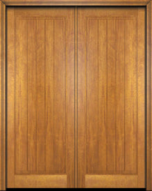 WDMA 64x84 Door (5ft4in by 7ft) Interior Swing Mahogany Rustic Arch Panel V-Grooved Plank Exterior or Double Door